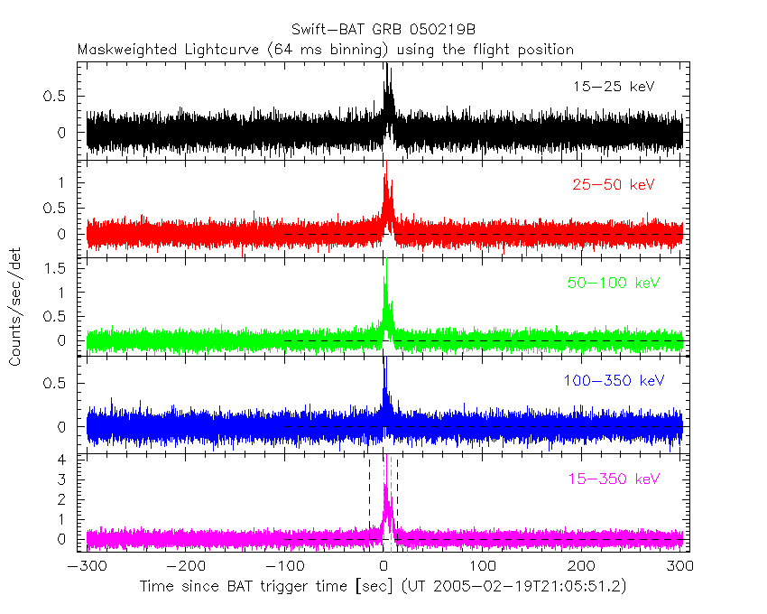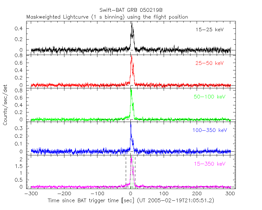 - 3) For all the mask-weighted lightcurves, the y-axis units are counts/sec/det where a det is 0.4 x 0.4 = 0.16 sq cm.