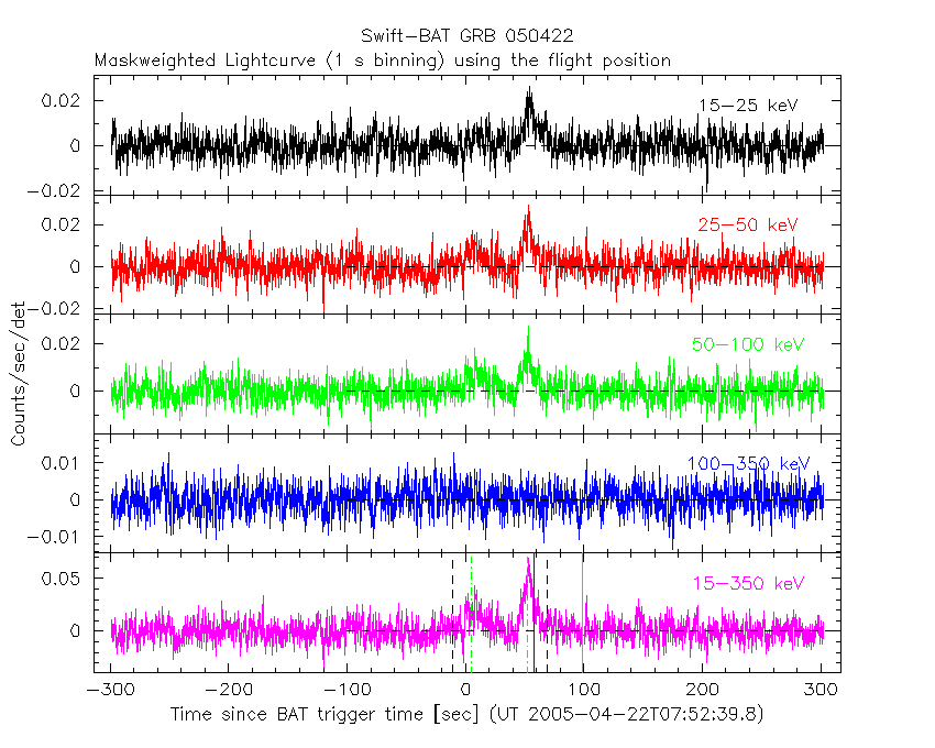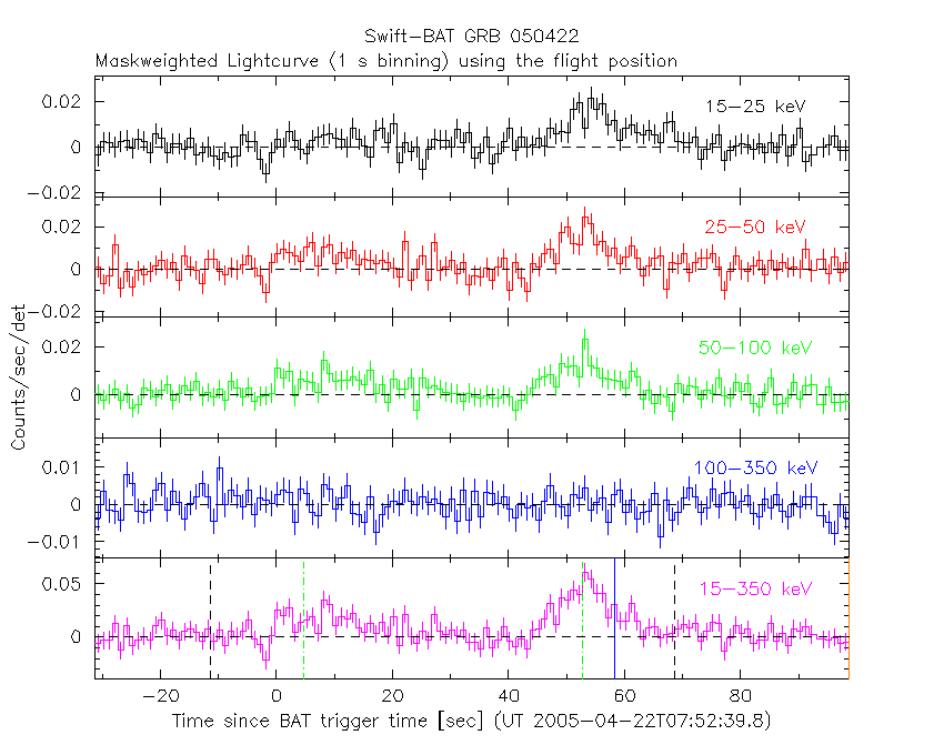 - 3) For all the mask-weighted lightcurves, the y-axis units are counts/sec/det where a det is 0.4 x 0.4 = 0.16 sq cm.