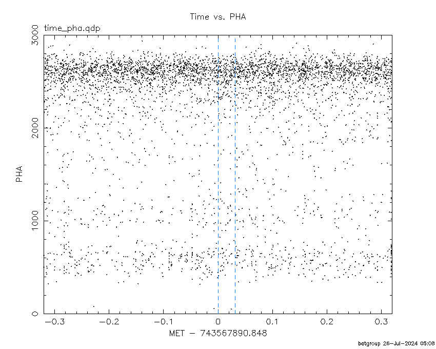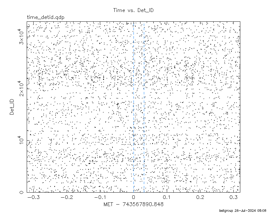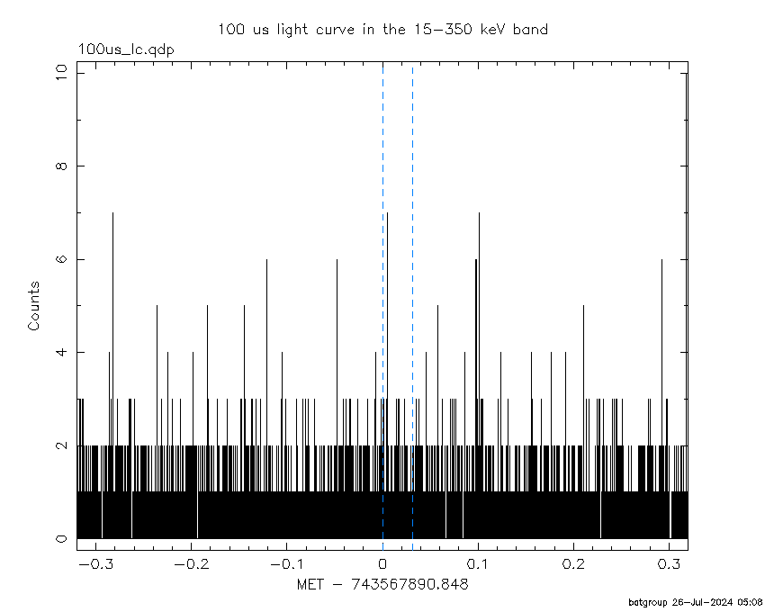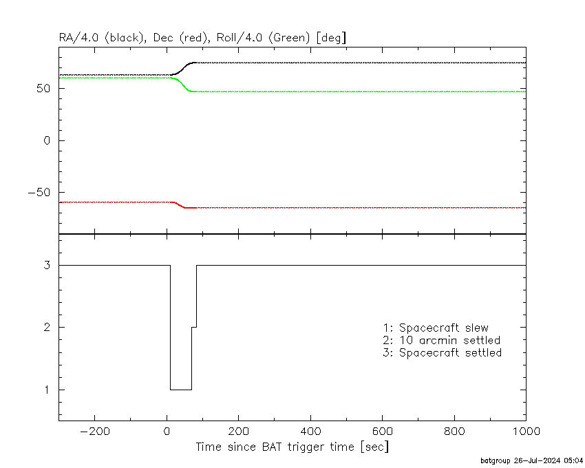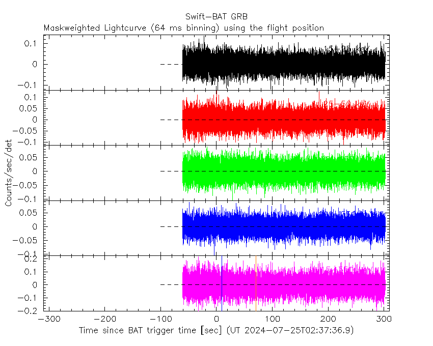 - 5) The verticle lines correspond to following: green dotted lines are T50 interval, black dotted lines are T90 interval, blue solid line(s) is a spacecraft slew start time, and orange solid line(s) is a spacecraft slew end time.