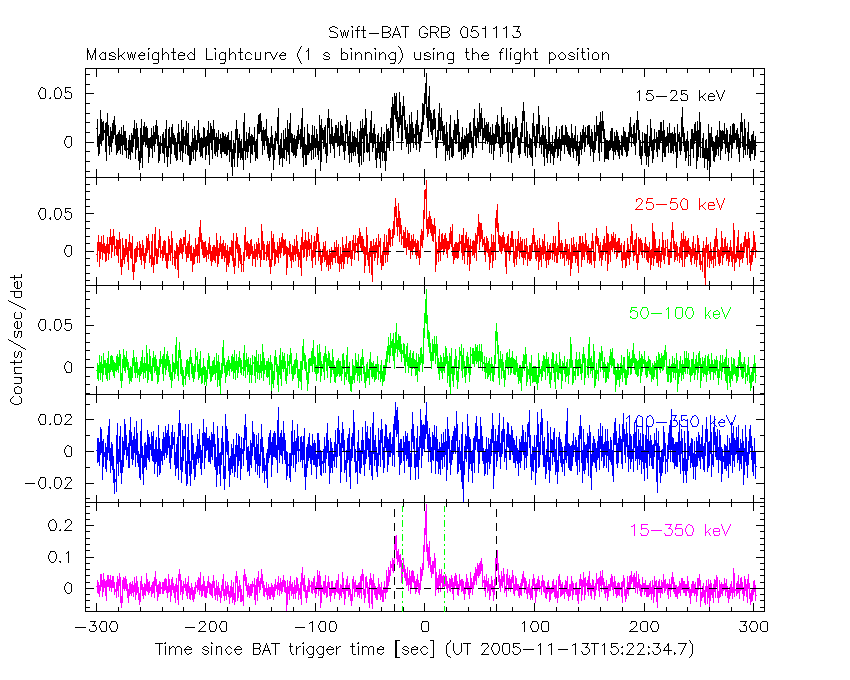 - 4) The verticle lines correspond to following: green dotted lines are T50 interval, black dotted lines are T90 interval, blue solid line(s) is a spacecraft slew start time, and orange solid line(s) is a spacecraft slew end time.