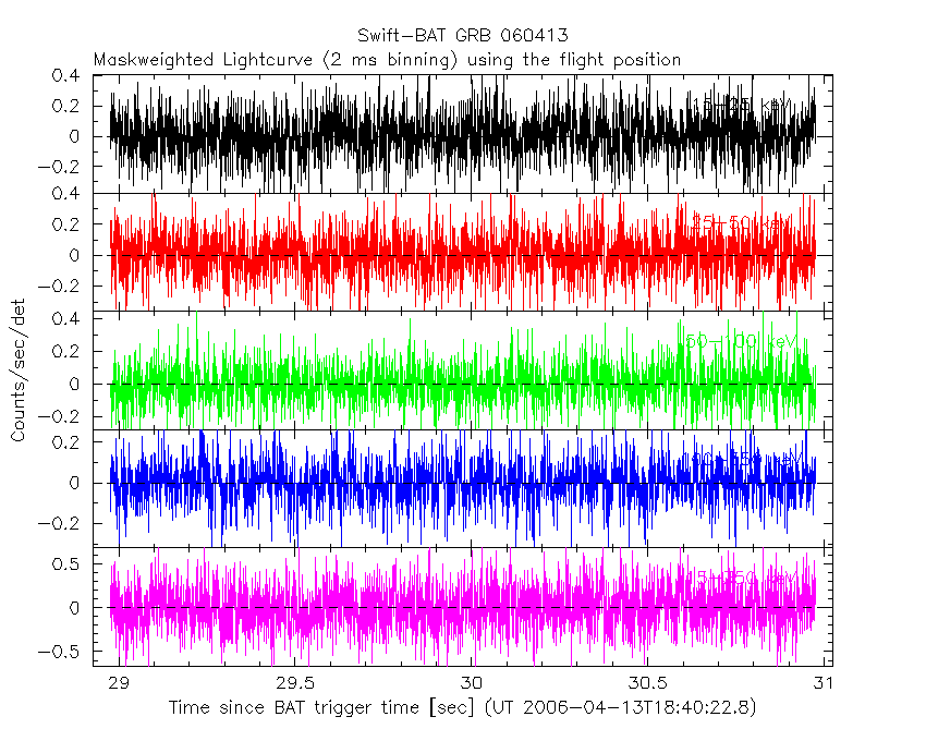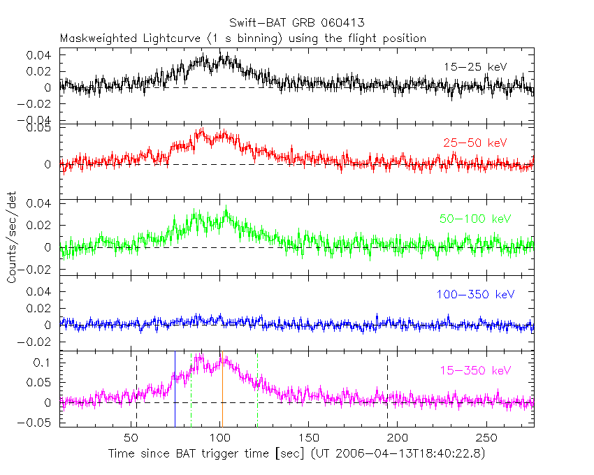 - 3) For all the mask-weighted lightcurves, the y-axis units are counts/sec/det where a det is 0.4 x 0.4 = 0.16 sq cm.