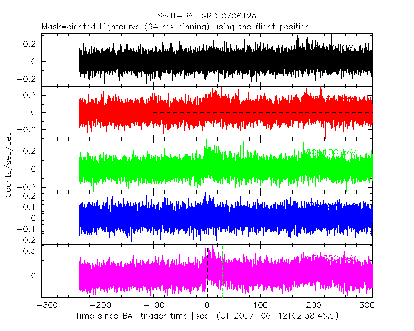 - 3) For all the mask-weighted lightcurves, the y-axis units are counts/sec/det where a det is 0.4 x 0.4 = 0.16 sq cm.