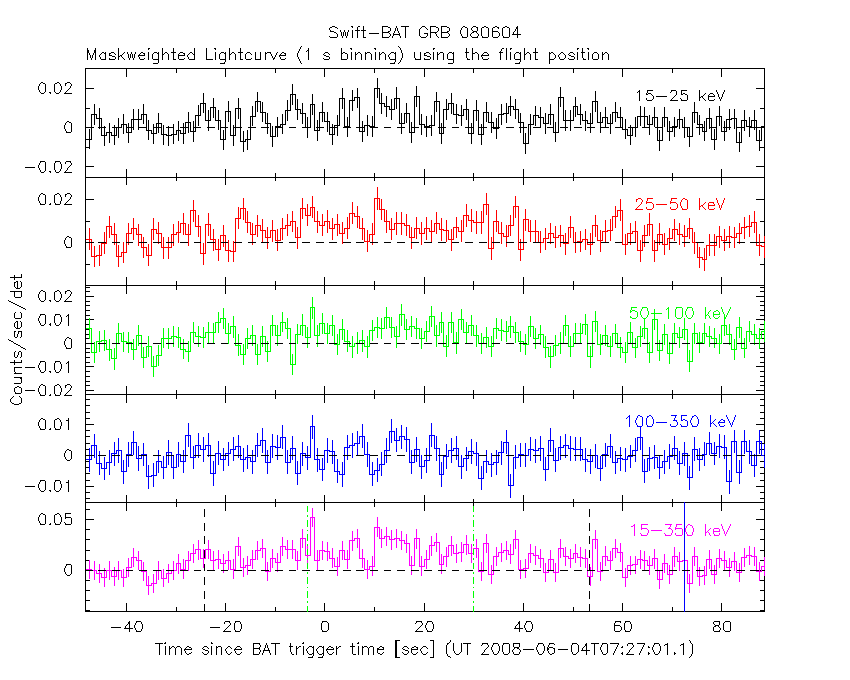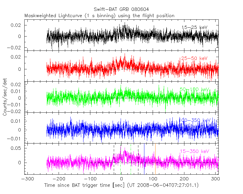 - 3) For all the mask-weighted lightcurves, the y-axis units are counts/sec/det where a det is 0.4 x 0.4 = 0.16 sq cm.