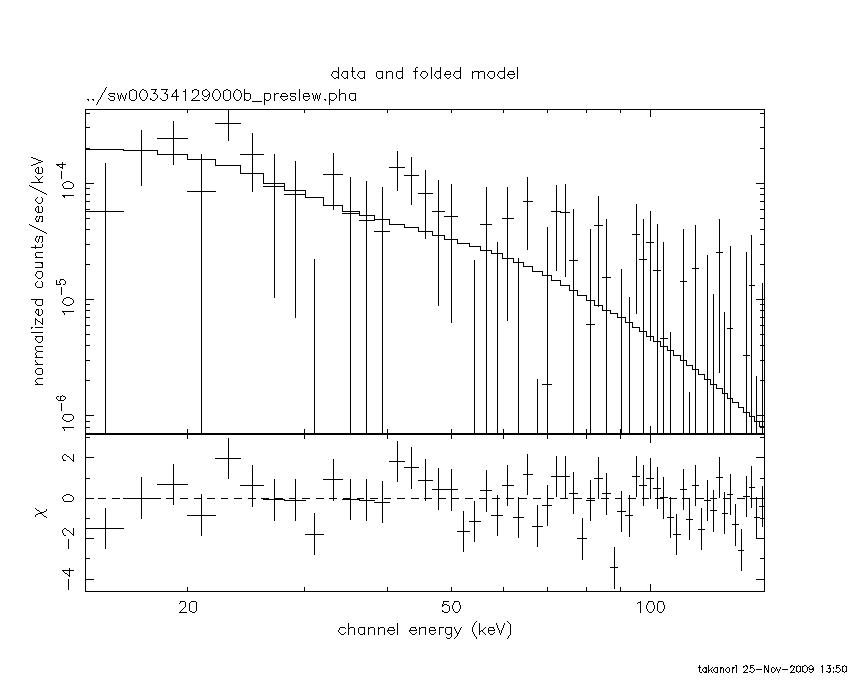 - 2) For long bursts, a spectral fit of the pre-slew DRM will introduce some errors in both a spectral shape and a normalization if the PHA file contains a lot of the slew/post-slew time interval.