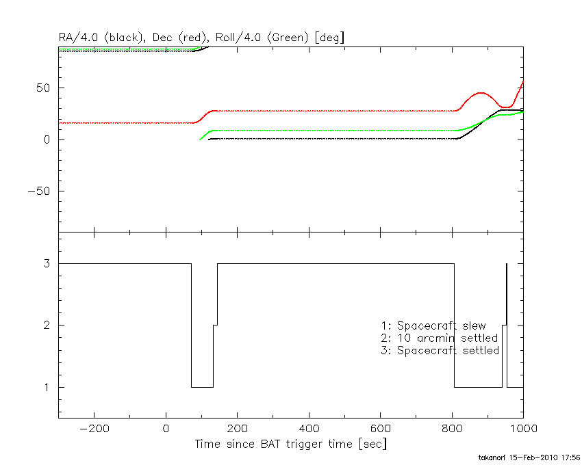 - 4) The verticle lines correspond to following: green dotted lines are T50 interval, black dotted lines are T90 interval, blue solid line(s) is a spacecraft slew start time, and orange solid line(s) is a spacecraft slew end time.