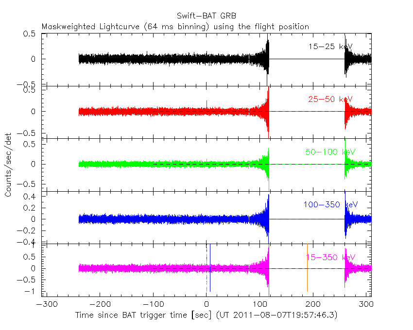 - 4) For all the mask-weighted lightcurves, the y-axis units are counts/sec/det where a det is 0.4 x 0.4 = 0.16 sq cm.