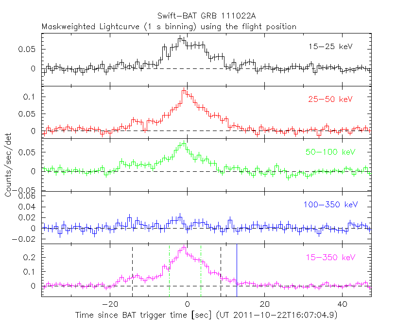 - 3) For all the mask-weighted lightcurves, the y-axis units are counts/sec/det where a det is 0.4 x 0.4 = 0.16 sq cm.