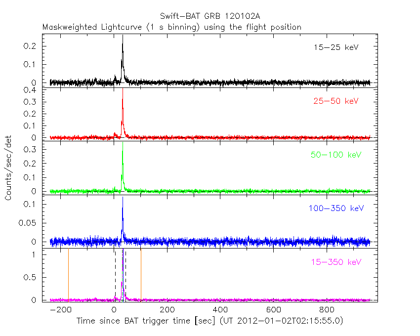 - 3) For all the mask-weighted lightcurves, the y-axis units are counts/sec/det where a det is 0.4 x 0.4 = 0.16 sq cm.