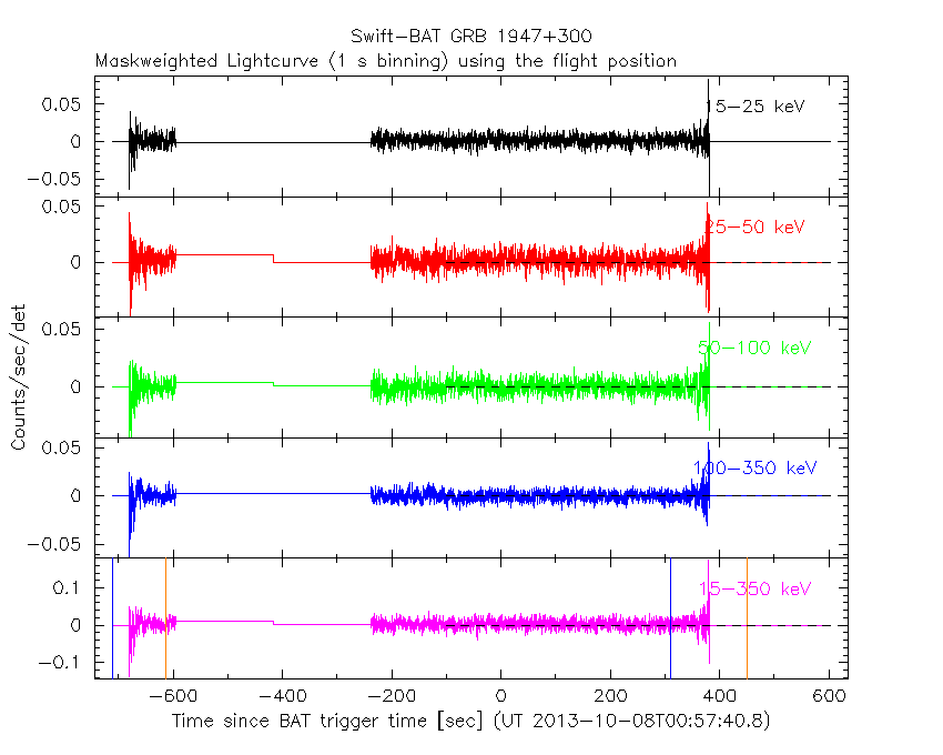 - 4) For all the mask-weighted lightcurves, the y-axis units are counts/sec/det where a det is 0.4 x 0.4 = 0.16 sq cm.