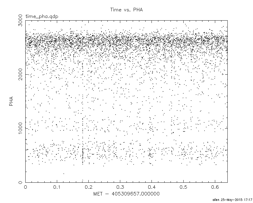 TIME vs. PHA plot around the beginning of event data (event_start to event_start+0.64s) with DETECTION mask