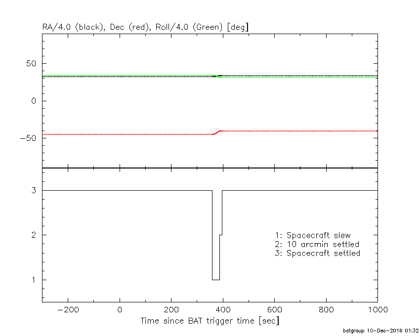 - 5) The verticle lines correspond to following: green dotted lines are T50 interval, black dotted lines are T90 interval, blue solid line(s) is a spacecraft slew start time, and orange solid line(s) is a spacecraft slew end time.