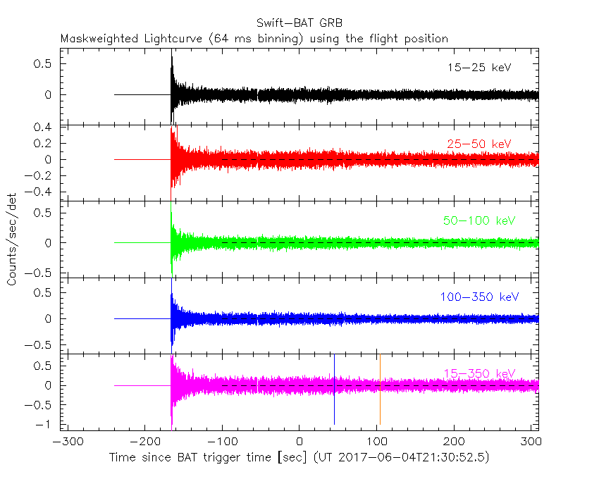 - 4) For all the mask-weighted lightcurves, the y-axis units are counts/sec/det where a det is 0.4 x 0.4 = 0.16 sq cm.