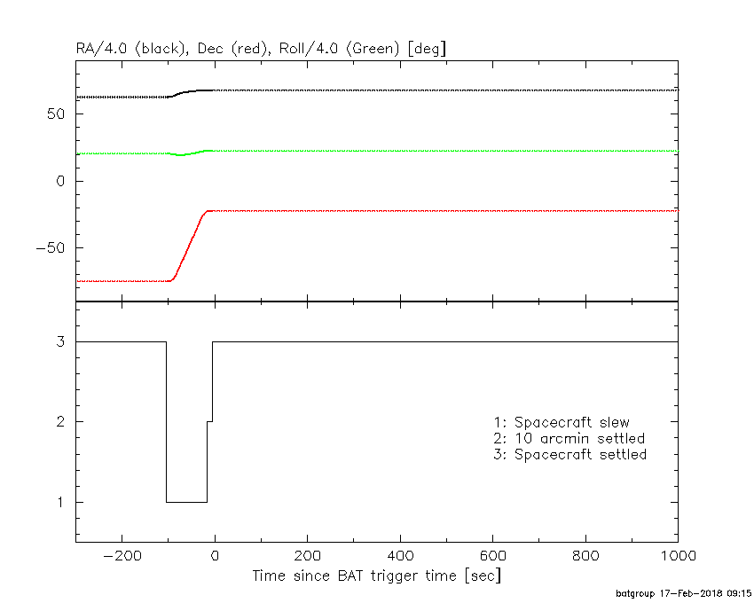 - 5) The verticle lines correspond to following: green dotted lines are T50 interval, black dotted lines are T90 interval, blue solid line(s) is a spacecraft slew start time, and orange solid line(s) is a spacecraft slew end time.